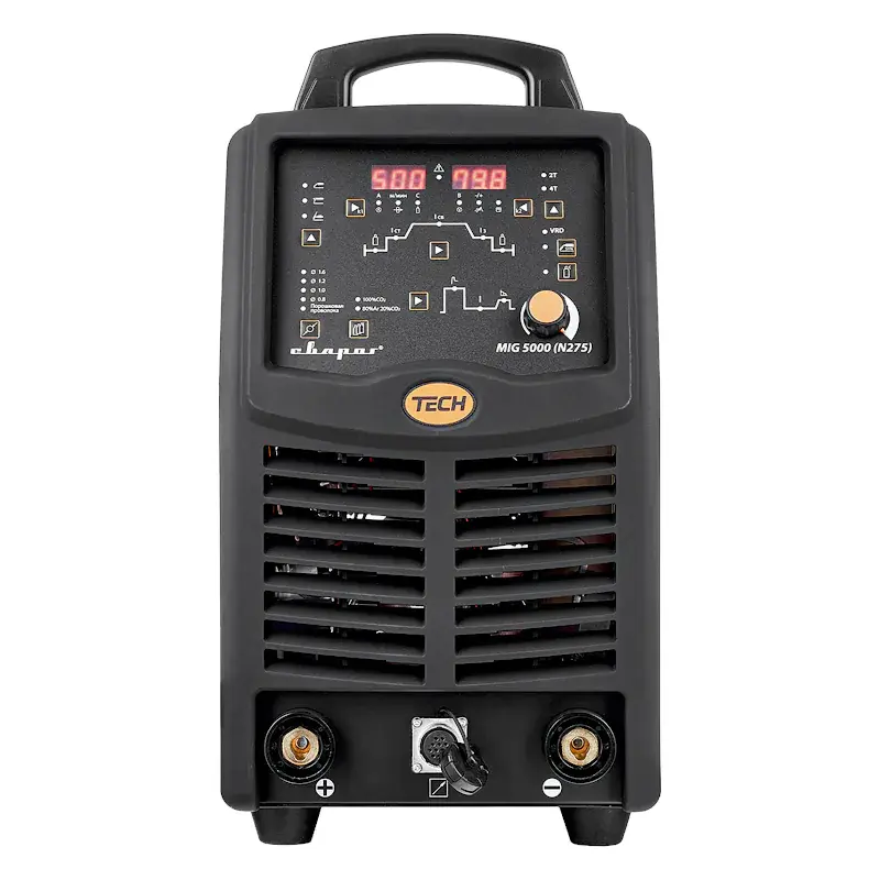 Инверторный полуавтомат Сварог TECH MIG 5000 Digital (N275) — универсальная промышленная система для полуавтоматической сварки в среде защитного газа (MIG/MAG), сварки порошковой проволокой (FCAW), ручной дуговой сварки покрытым электродом (MMA), а также для аргонодуговой сварки неплавящимся электродом (TIG Lift).