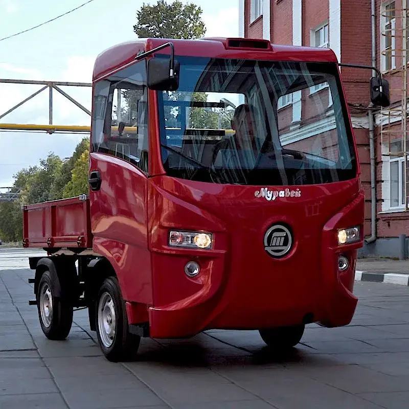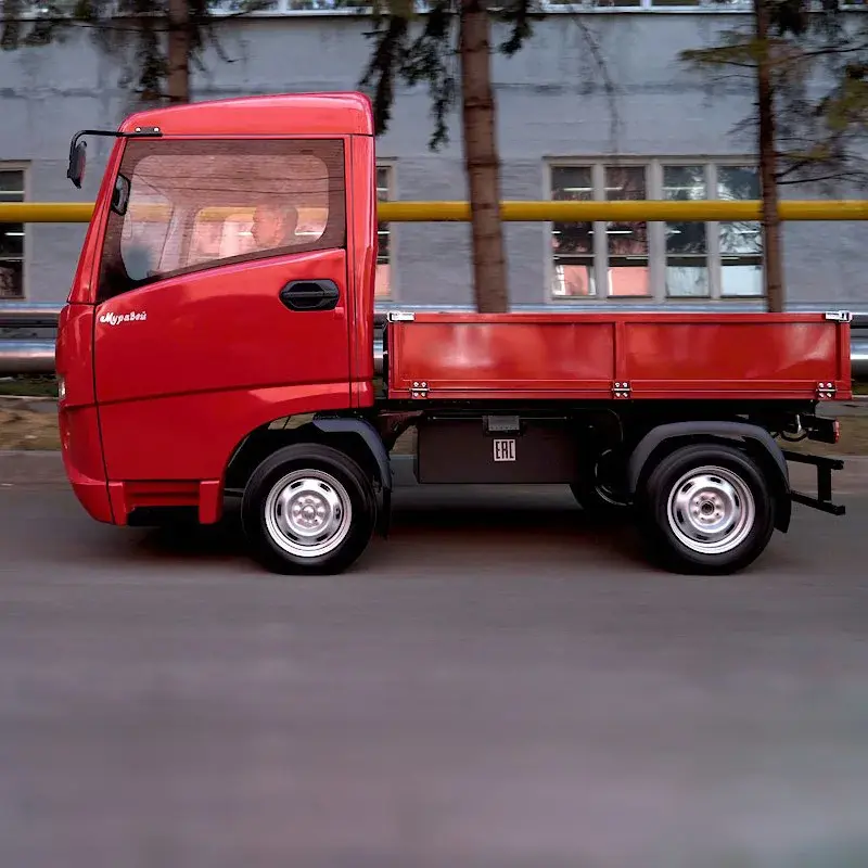Электромобиль «Муравей» - это российская разработка, выпускаемая на ПО «Туламашзавод». Предназначен для осуществления перевозок людей по территории предприятий, парков, строительных участков, а также для транспортировки грузов. Современный двигатель и батареи повышенной емкости позволяют перемещаться на расстояние до 90 км на одном заряде с максимальной скоростью 20 км/ч. Крытая кабина водителя позволяет работать при любых погодных условиях.