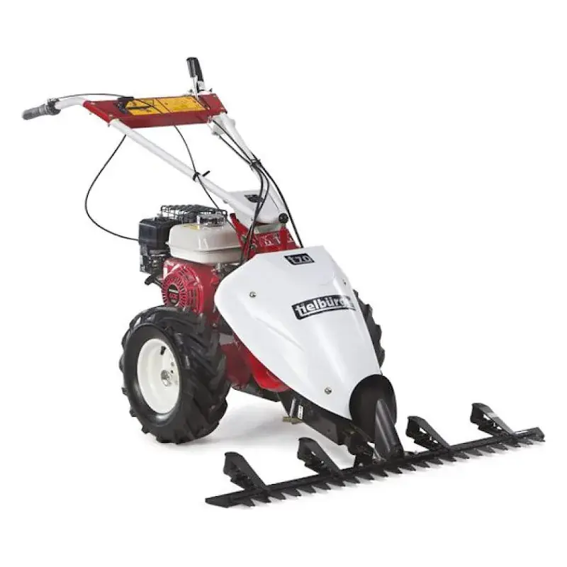 Оснащена двигателем Honda GX160 с большим моторесурсом. Косилка применяется для скашивания жесткой сухой травы, для заготовки кормов для животных. Опционально возможно присоединение ножа-отвала и режущего полотна шириной 87 см, 107 см, 102 см, 112 см. Замена производится легко благодаря быстросъемному креплению. Конструкция сенокосилки отличается индивидуальной регулировкой положения рукоятки, поэтому агрегатом удобно работать. Возможна работа в условиях повышенной влажности.