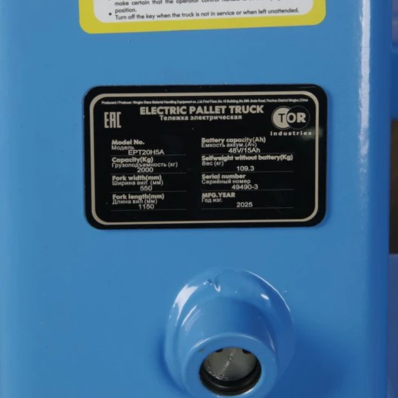 Тележка электрическая TOR EPT15H Li-pol с грузоподъемностью 1500кг, вилами длиной 1500 мм.