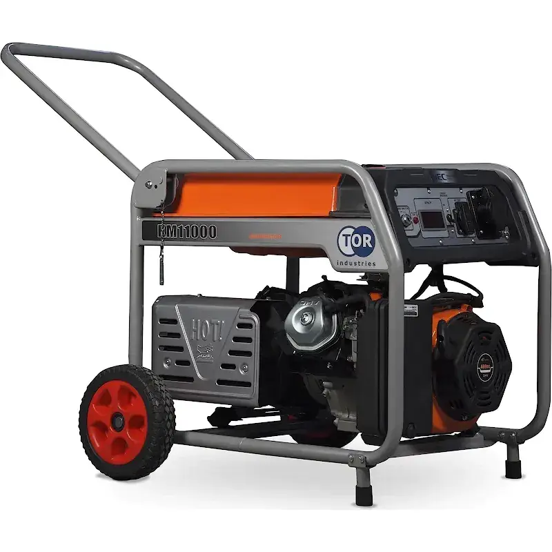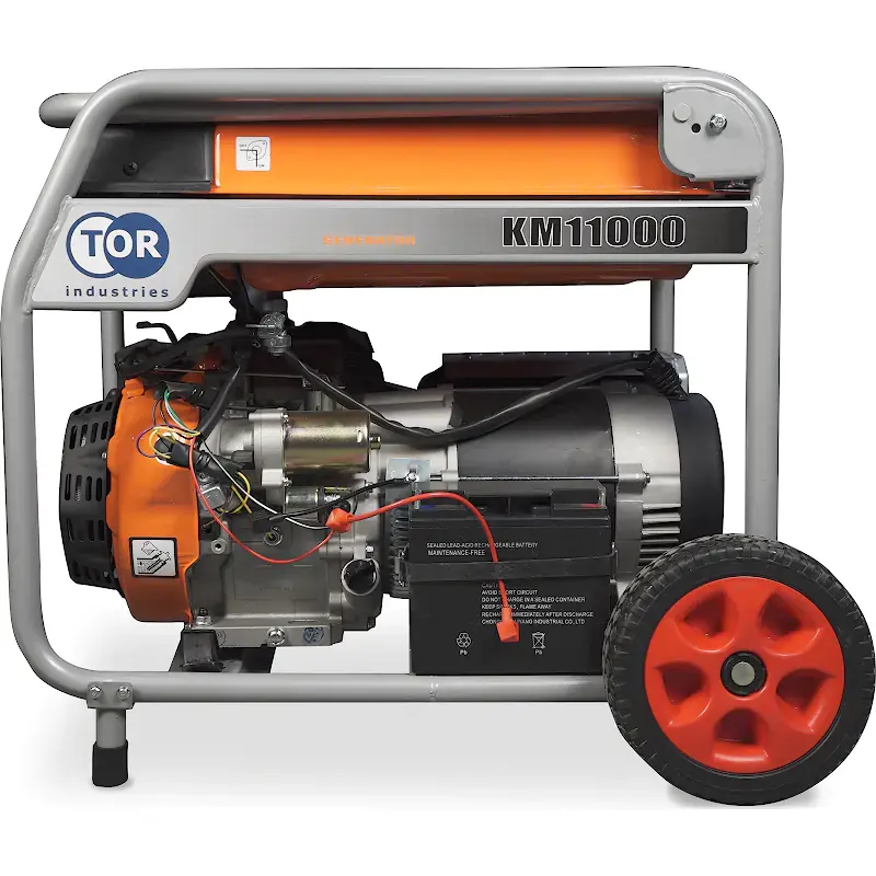 Генератор бензиновый TOR KM11000H 8 кВт 220В 33 л. с кнопкой запуска и колесами эта мощная модель может снабжать электроэнергией несколько потребителей одновременно либо одного, но с высокими пусковыми токами.
