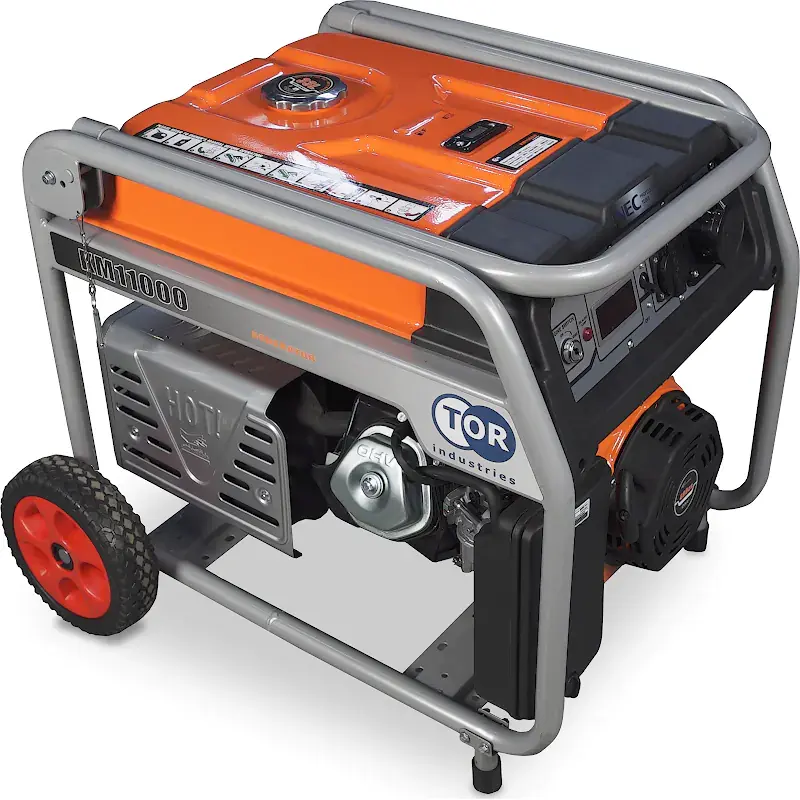 Генератор бензиновый TOR KM11000H 8 кВт 220В 33 л. с кнопкой запуска и колесами эта мощная модель может снабжать электроэнергией несколько потребителей одновременно либо одного, но с высокими пусковыми токами.