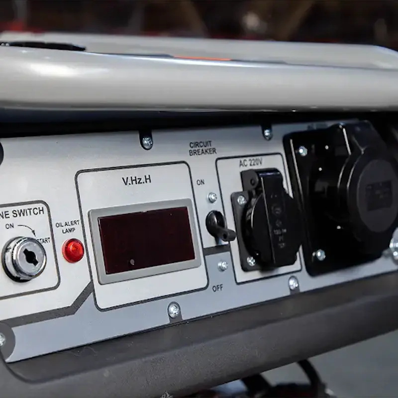 Синхронный альтернатор с медной намоткой позволяет вырабатывать чистый ток и выдерживать высокие нагрузки в момент запуска потребителей с электродвигателем. Кнопка запуска с электростартером облегчает процесс запуска генератора. Все рабочие механизмы прочно закреплены на массивной металлической раме.