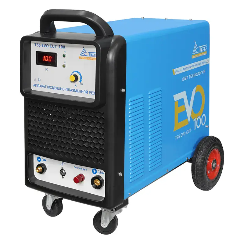 TSS EVO CUT-100 – инверторный аппарат для воздушно-плазменной резки предназначен для получения деталей и заготовок из листового металла и различного металлического профиля, резки металлолома, выполнения ремонтных работ различного вида. Резка производится сжатой плазменной струей только электропроводных материалов, таких как низкоуглеродистые стали (MS), нержавеющие стали (SS), алюминиевые сплавы (AL), медные сплавы, титан, чугун и др.