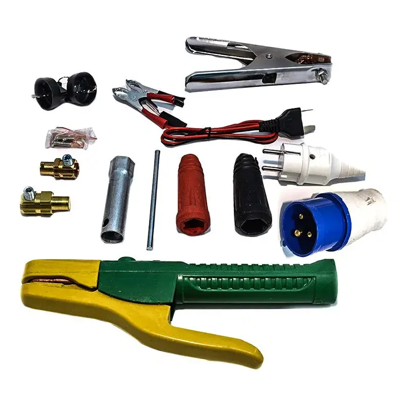 - Быстроразъемные соединения сварочных кабелей такого же типа, как на сварочных источниках работающих от сети, позволяют подключать кабель сечением до 70мм.