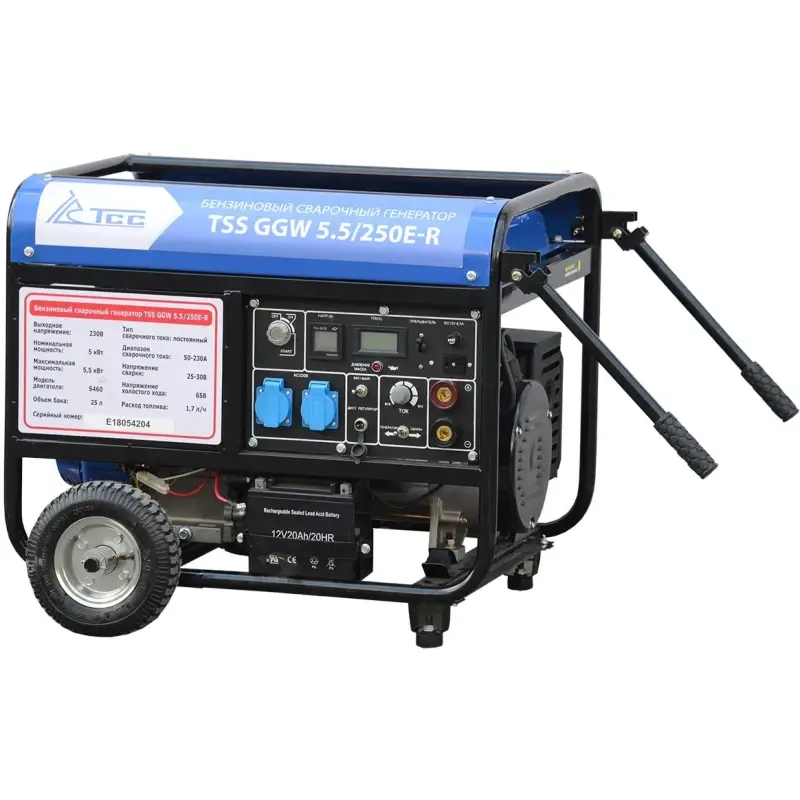 Бензиновый сварочный генератор ТСС GGW 5.5/250E-R 018686 используется в качестве источника электроэнергии для питания бытовых приборов и осветительного оборудования. Также установка подходит для выполнения сварочных работ.