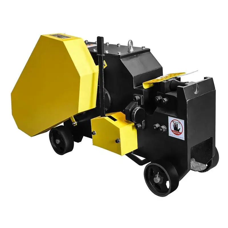 Станок для резки арматуры ТСС-GQ 42A имеет мощность 3 кВт и предназначен для разрубания металлических прутов как с круглым, так и с квадратным сечением. Агрегат работает от сети с выходным напряжением 380 В и имеет колеса для удобства транспортировки по площадке.