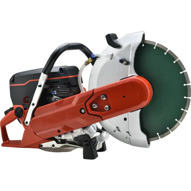 Бензорез ТСС GT-7280S, рассчитанный на установку дисков диаметром 350 мм, подходит для разрезания асфальта, брусчатки, гранита или изделий из камня. Инструмент незаменим при проведении спасательных работ в случае обрушения дома или выполнении прочих задач, связанных с демонтажем строительных конструкций из бетона и стали. Скорость вращения оснастки на холостом ходу составляет 4800 об/мин, максимальный крутящий момент — 6,9 Нм. Для повышения удобства и эффективности работы бензорез оснащен опорными ножками и разъемом для подключения системы водяного охлаждения. Двухтактный двигатель мощностью 4,8 л.с. имеет электронное зажигание и заводится при помощи ручного стартера.