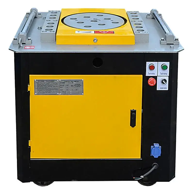 Станок для гибки арматуры ТСС GW 42N оснащен электрическим двигателем мощностью 3 кВт и позволяет работать со сталью диаметром от 6 до 40 мм. Модель имеет цифровую панель управления, которая позволяет программировать рабочие параметры.