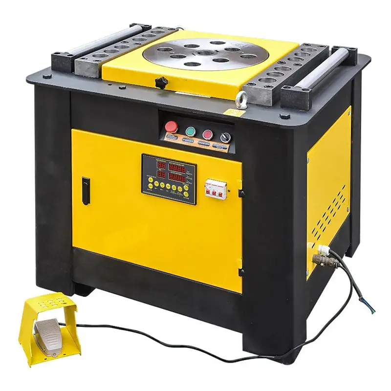 Станок для гибки арматуры ТСС GW 52 обладает двигателем мощностью 4 кВт и позволяет работать с арматурной сталью диаметром от 6 до 45 мм. Модель оснащена цифровой панелью управления, которая позволяет программировать рабочие параметры.