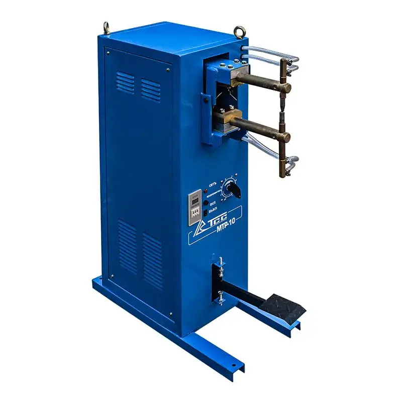 Машина контактной точечной сварки ТСС МТР-10 – стационарный аппарат номинальной мощностью 10 кВа, который используется для соединения металлических заготовок толщиной 0,3+0,3 – 1,5+1,5 мм. Модель проста в использовании, а потому вы легко справитесь с работой даже если не обладаете высоким уровнем квалификации.
