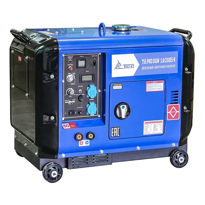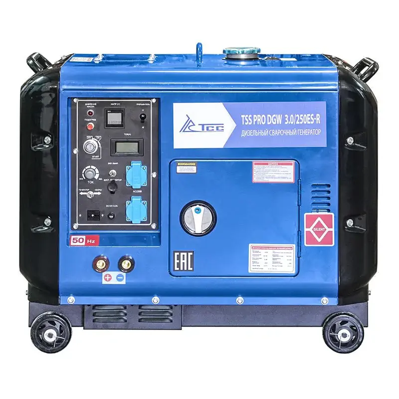 Сварочный дизельный генератор TSS PRO DGW 3.0/250ES-R в супертихом кожухе предназначен для проведения высококачественной Ручной Дуговой Сварки. Имеет дополнительную функцию - питание электропотребителей.
