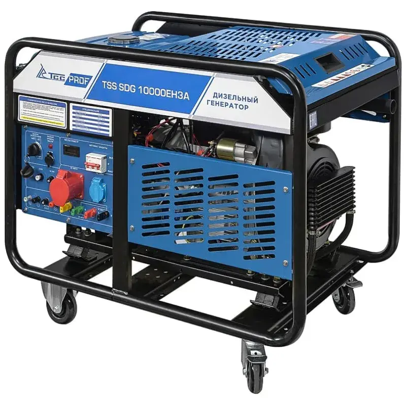 Дизель-генератор ТСС SDG 10000EH3A - это надежный и мощный агрегат для резервного или основного электроснабжения. Он оснащен двухцилиндровым четырехтактным двигателем с воздушным охлаждением, электростартером и разъемом для подключения блока АВР. Для удобства передвижения он имеет колесный комплект.