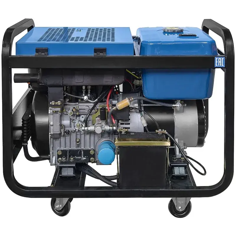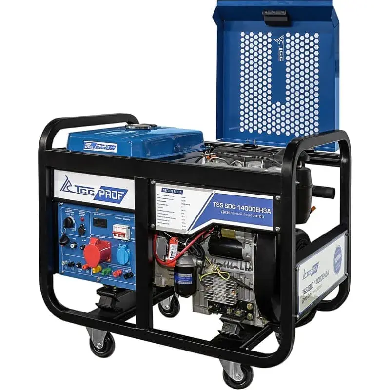 Дизельный генератор ТСС SDG 14000EH3A способен вырабатывать электроэнергию с номинальной мощностью 12 кВт и напряжением 230-400 вольт, что позволяет подключать к нему различные потребители. Кроме того, он оснащен колесным комплектом для удобства передвижения по рабочей площадке.