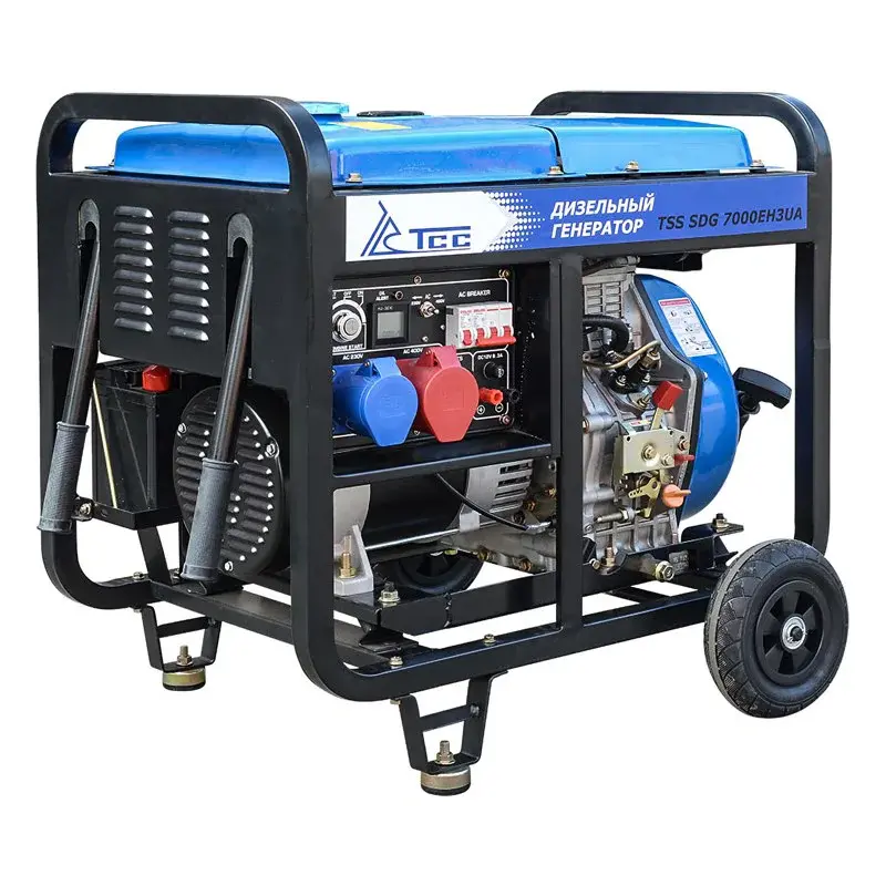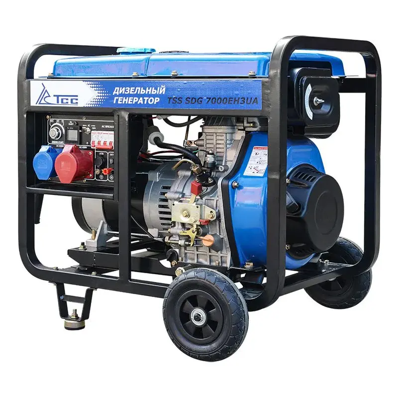 Дизельный генератор TSS SDG 7000EH3UA с фиксированной номинальной мощностью 6,5 кВт для однофазного и трехфазного режима работы. Лучший выбор для работ с различным профессиональным оборудованием. Применяются в коммерческих и социальных организациях, специальных службах, частном секторе, можно использовать генератор для загородного дома, дачи.