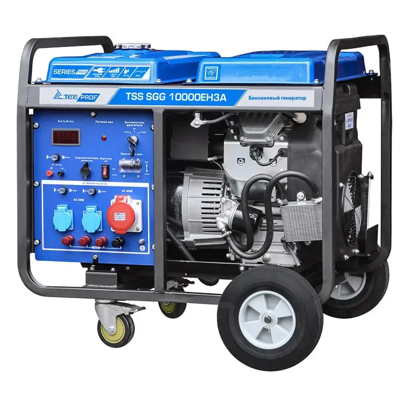 Бензогенератор TSS SGG 10000EH3A предназначен для питания 3-фазных потребителей, которые при подключении не превышают суммарной мощности 10 кВт. Для удобного перемещения по рабочей площадке модель оснащена колесным комплектом.