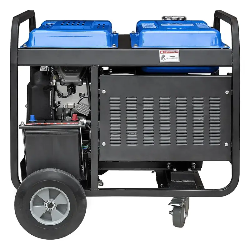 - Прочная рама защищает генератор от повреждений и образует по бокам транспортировочные ручки.