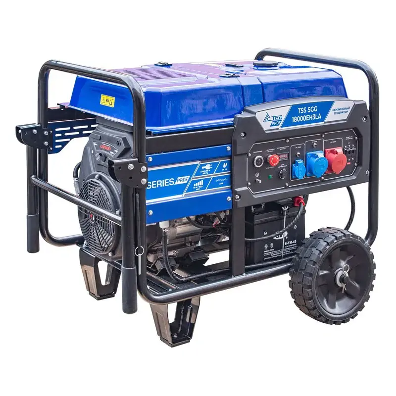 Бензогенератор TSS SGG 18000EH3LA – профессиональная модель, оборудованная двигателем Loncin, который обладает большим моторесурсом. Аппарат отлично подходит для питания техники мощностью до 17 кВт. Для удобного перемещения по рабочей зоне генератор оснащен транспортировочным комплектом.