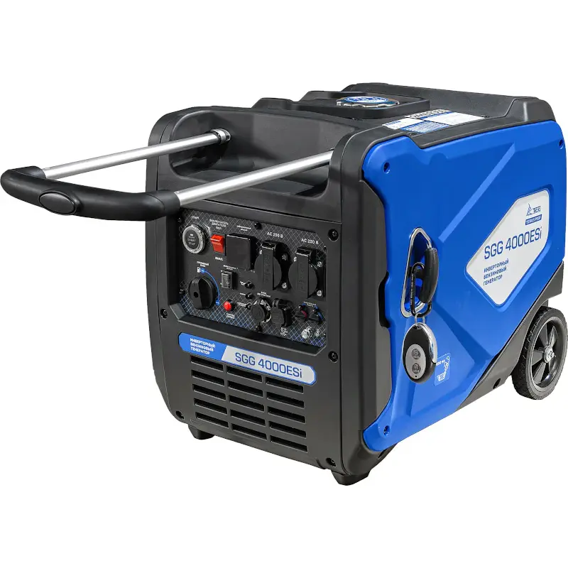 Бензогенератор оснащен 4-тактным двигателем мощностью 8,8 л.с., который легко заводится поворотом ключа в замке зажигания. Запаса бензина в баке объемом 15 л хватает на продолжительную работу. Нагрузка подключается к двум бытовым розеткам 230 В и USB-портам. Индикаторы информируют о нормальной работе, недостаточном уровне моторного масла и перегрузке. Рабочие характеристики, такие как ток, напряжение, частота и моточасы, отображаются на дисплее.