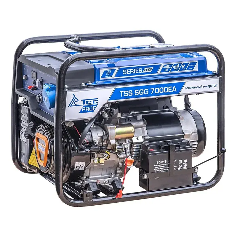 Бензогенератор TSS SGG 7000Е3A предназначен для питания однофазных потребителей мощностью до 2,3 кВт и трехфазных потребителей суммарной мощностью 7 кВт. К достоинствам модели относятся наличие электростартера для простого запуска двигателя, возможность подключения блока автозапуска, а также регулятор напряжения AVR.