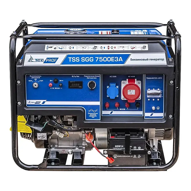 Бензогенератор TSS SGG 7500Е3A используется для питания однофазных потребителей мощностью до 2,5 кВт и трехфазных потребителей суммарной мощностью 7,5 кВт. Модель оснащена электростартером для быстрого запуска двигателя, глушителем, разъемом для подключения блока автозапуска, а также регулятором напряжения.