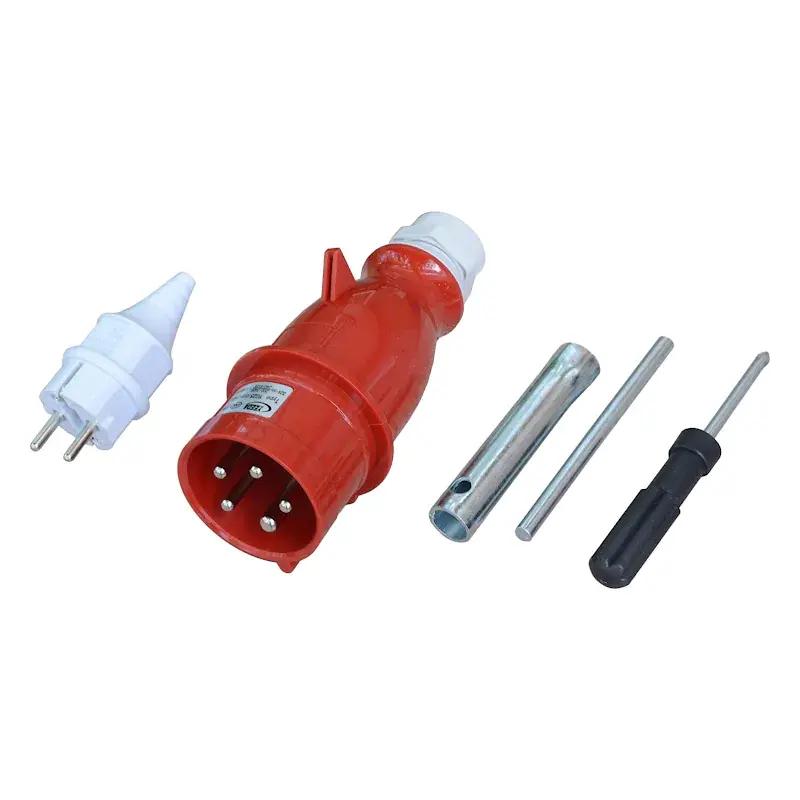 Бензиновый электрогенератор отлично подойдет для размещения на строительной площадке, в автосервисе, торговой точке, гараже или на небольшом производстве. Например, можно подключить компрессор или автоподъемник в автосервисе. Для питания потребителей на корпусе есть две розетки: стандартная 230 В (16 А) и силовая 400 В (32 А). Генератор также поможет зарядить севший автомобильный аккумулятор. Для этого предусмотрен отдельных выход на 12 В.