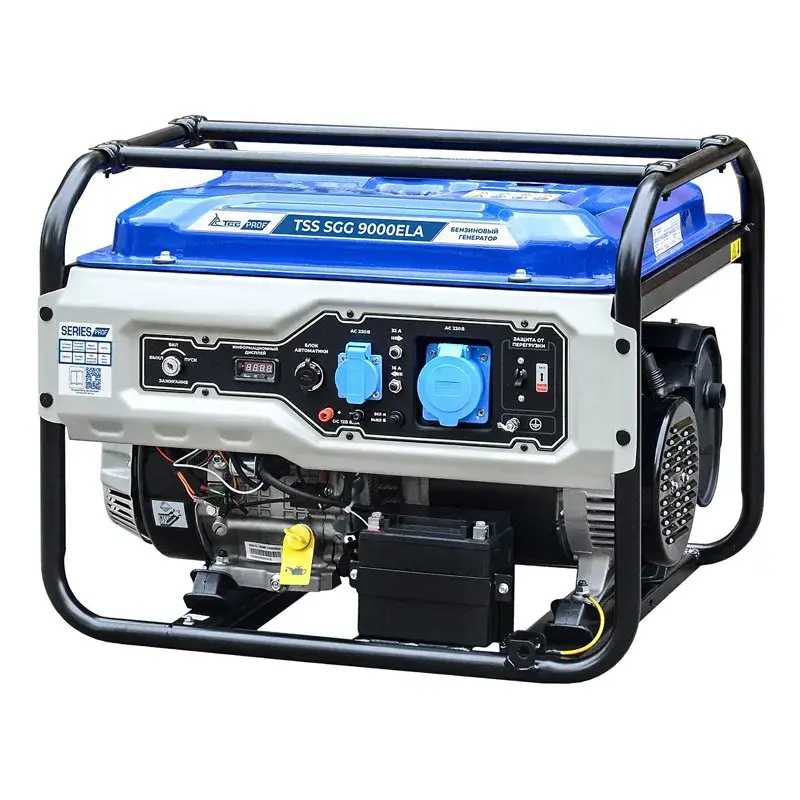 На корпусе есть разъем для подключения блока автоматики АВР, который докупается отдельно. При его установке регулятор обеспечит стабильное выходное напряжение даже при скачках в электросети. Это защищает подключенную технику от поломки, а мотор бензинового генератора TSS SGG 9000ELA от перегрузки.