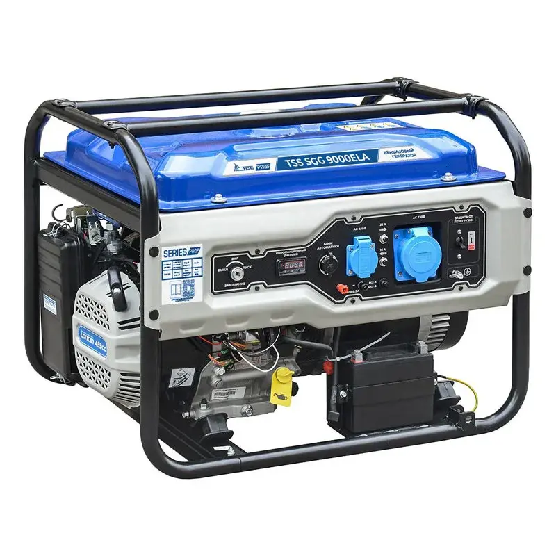 Бензогенератор TSS SGG 9000ELA с номинальной мощностью 8 кВт позволяет подключать оборудование через 2 розетки на 230 В: стандартную и силовую. Для простого и быстрого запуска предусмотрен электростартер.