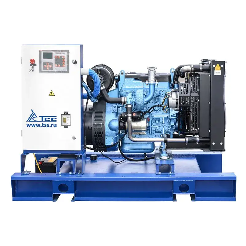 Промышленный дизельный генератор ТСС TBd 41TS номинальной мощностью 30 кВт служит в качестве автономного источника однофазного и трехфазного тока для питания производственных предприятий, строительных площадок, торговых комплексов, поселков, больниц и других промышленных и социальных объектов, где жизненно необходимо бесперебойное электроснабжение. Генераторная установка оснащена двигателем компании Baudouin номинальной мощностью 32 кВт с жидкостным охлаждением, который адаптирован под российское дизельное топливо и суровые климатические условия. Электростанция имеет открытый кожух и рассчитана на длительную работу без дозаправки благодаря топливному баку объемом 90 литров.