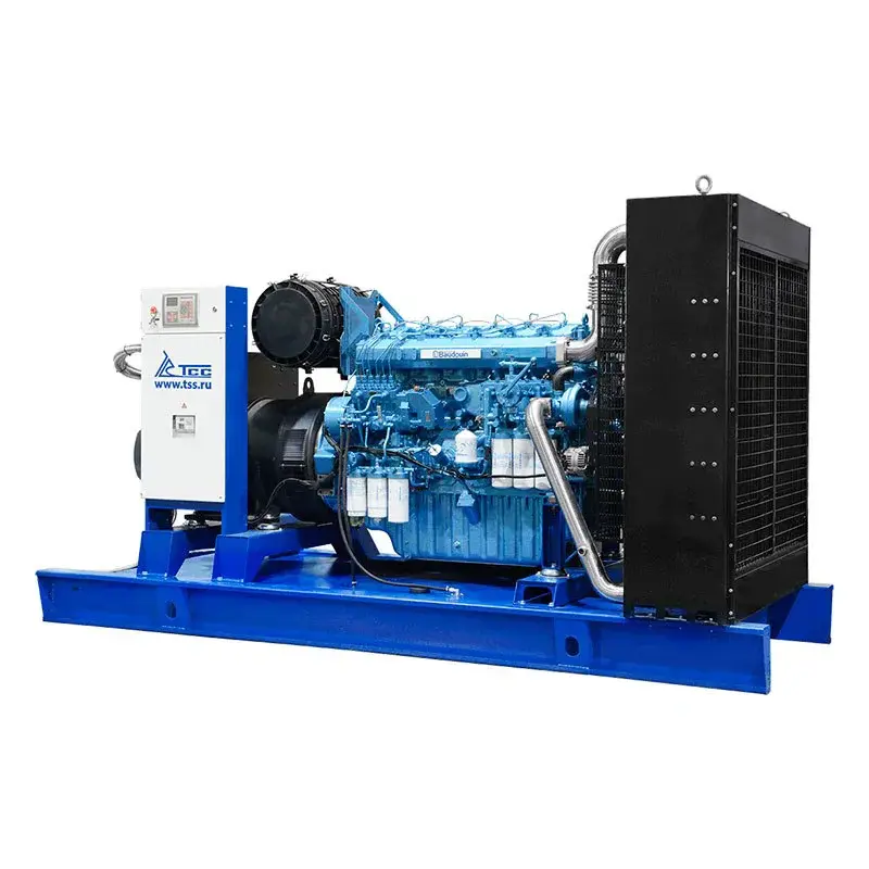 Промышленный дизельный генератор ТСС TBd 830TS номинальной мощностью 600 кВт служит автономным источником однофазного и трехфазного тока для питания производственных предприятий, строительных площадок, торговых комплексов, поселков, больниц и других промышленных и социальных объектов, где жизненно необходимо бесперебойное электроснабжение. Генераторная установка оснащена двигателем компании Baudouin мощностью 725 кВт с жидкостным охлаждением, который адаптирован под российское дизельное топливо и суровые климатические условия. Электростанция имеет открытый тип кожуха и рассчитана на длительную работу без дозаправки благодаря топливному баку объемом 1050 литров.