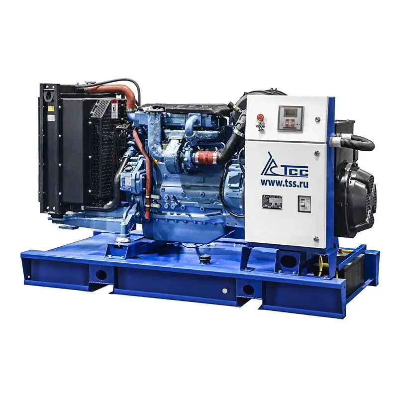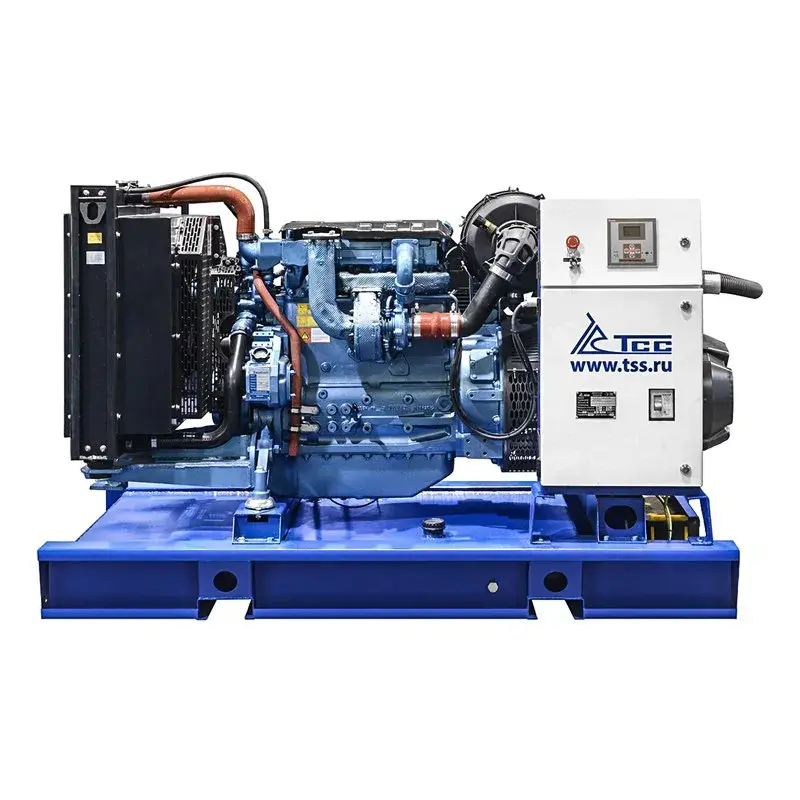 Промышленный дизельный генератор ТСС TBd 83TS номинальной мощностью 60 кВт служит в качестве автономного источника однофазного и трехфазного тока для питания производственных предприятий, строительных площадок, торговых комплексов, поселков, больниц и других промышленных и социальных объектов, где жизненно необходимо бесперебойное электроснабжение. Генераторная установка оснащена двигателем компании Baudouin номинальной мощностью 74 кВт с жидкостным охлаждением, который адаптирован под российское дизельное топливо и суровые климатические условия. Электростанция имеет открытый тип кожуха и рассчитана на длительную работу без дозаправки благодаря топливному баку объемом 150 литров.