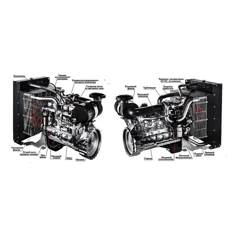 Дизельный двигатель FPT NEF67TM7.S500 итальянского производства с максимальной мощностью 194 кВт поддерживает турбонаддув и промежуточное охлаждение воздуха, что снижает риск перегрева. Есть электронный регулятор оборотов. Конструктивные особенности способствуют снижению уровня шума во время работы мотора.
