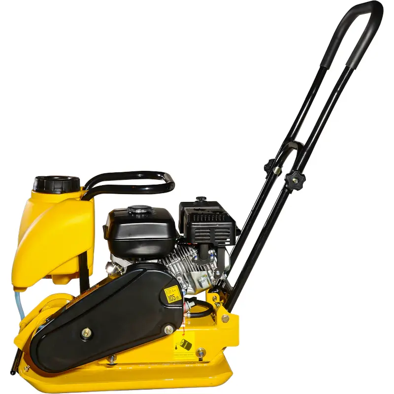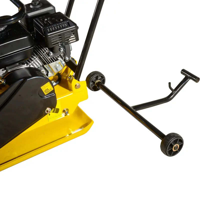 Виброплита Huter VP-35W мощностью 6,5 л.с. подходит для обработки песка, гравия, брусчатки на глубину до 35 см. Центробежная сила составляет 25 кН, что обеспечивает быстрое и качественное уплотнение.