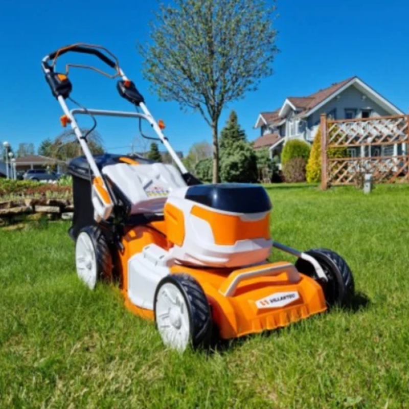 Самоходная газонокосилка VILLARTEC MA 4046T Set предназначена для ухода за газонной травой на небольших лужайках и площадках возле дома. Удобство передвижения обеспечивается плавной регулировкой скорости хода. Газонокосилка работает от аккумуляторной батареи напряжением 40 В. Имеет центральную регулировку высоты скашивания с шестью положениями в диапазоне от 25 до 80 мм и значительную ширину скашивания 46 см. Аккумуляторные батареи с напряжением 40 В (есть два слота для их установки) позволяют раскрыть максимальный мощностной потенциал бесщеточного двигателя. Максимальное время работы газонокосилки будет продемонстрировано, если ее укомплектовать аккумуляторными батареями на 8 А*час. Надежный металлический корпус косильной деки обеспечивает не только безопасность и надежность конструкции, но и ровное кошение.