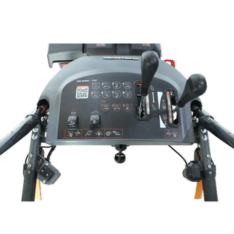 Все рычаги управления удобно расположены под руками. Взаимная блокировка правой и левой рукояток позволяет одной рукой регулировать направление и дальность выброса снежной массы, не останавливая машину. Благодаря переключателю передач можно выбрать подходящую скорость движения вперед и назад. Гусеничный ход обеспечивает хорошее сцепление бензинового снегоуборщика VILLARTEC с дорогой, исключает пробуксовку на обледеневшей поверхности или склонах. В зависимости от качества поверхности высоту снегозаборника над землей можно регулировать путем перестановки опорных лыж ковша. На неровных дорогах, посыпанных гравием, зазор можно увеличить.
