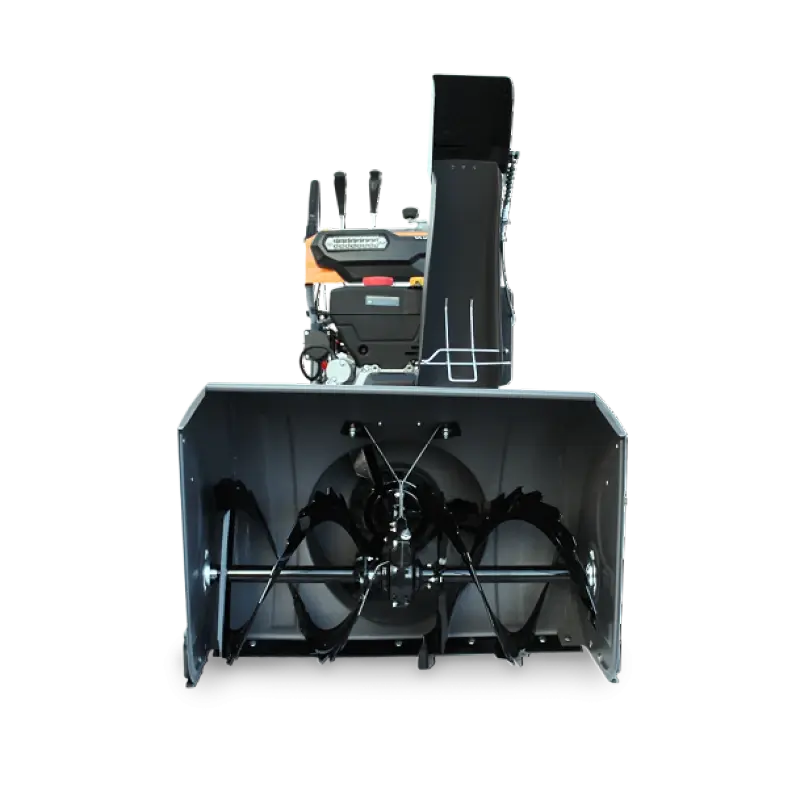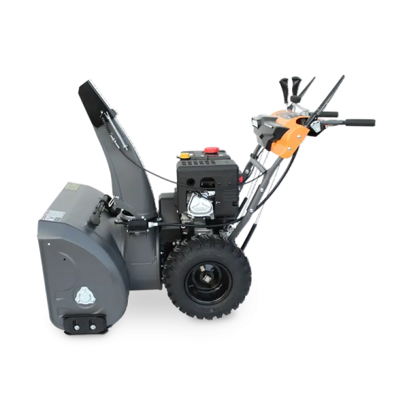 Снегоуборочный ковш изготавливается из стали толщиной 2 мм и усиливается ребрами жесткости. За счет этого выдерживает большие нагрузки. Ширина захвата снега – 76 см, дальность выброса до 15 м. Колеса большого диаметра, изготавливаются из эластичной резины, устойчивой к сильным морозам. Имеет функцию автоматической разблокировки дифференциала, которая повышает маневренность машины.