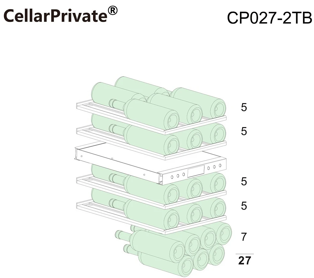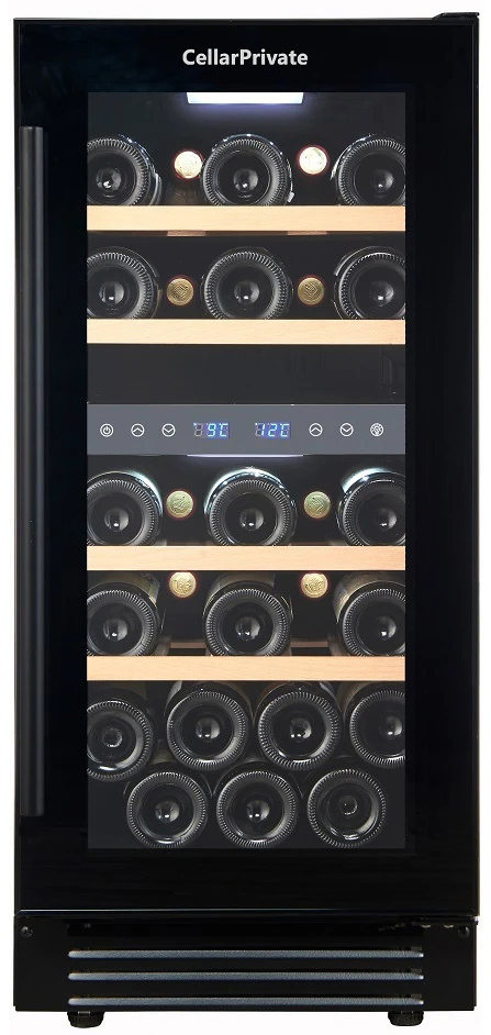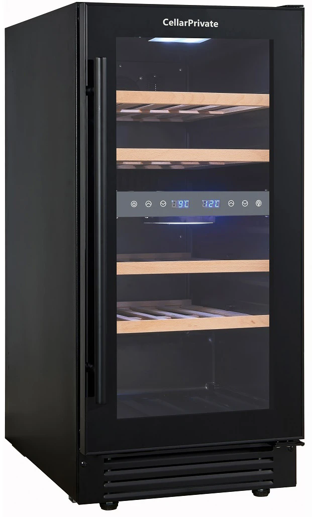 Винный шкаф двухзонный Cellar Private CP027-2TB вместимостью до 27 бутылок предназначен для хранения при оптимальных условиях бутилированного вина различных сортов в барах, ресторанах, специализированных магазинах, подсобных складских помещениях, а также в домашних условиях.