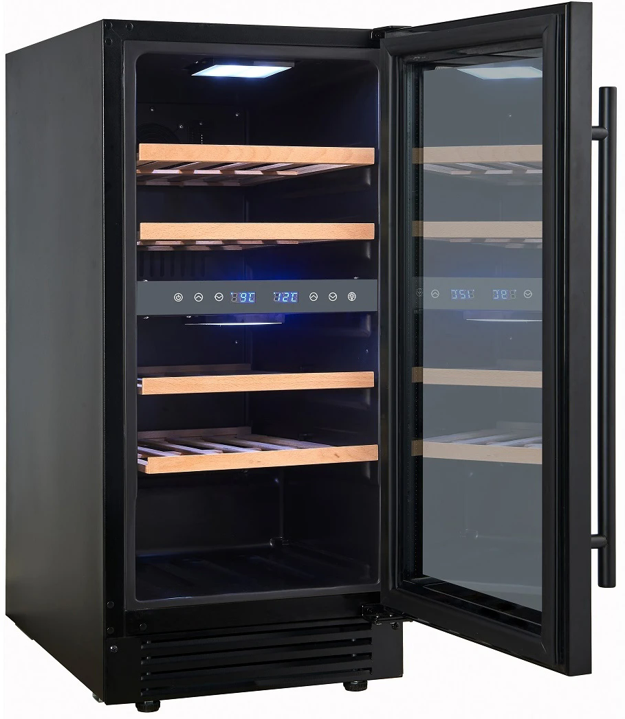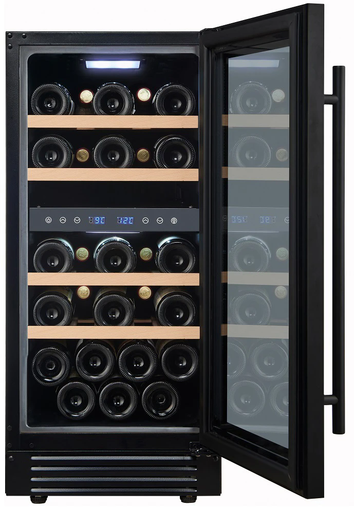 Температура выставляется в каждой зоне раздельно, что позволяет хранить одновременно красные и белые вина.