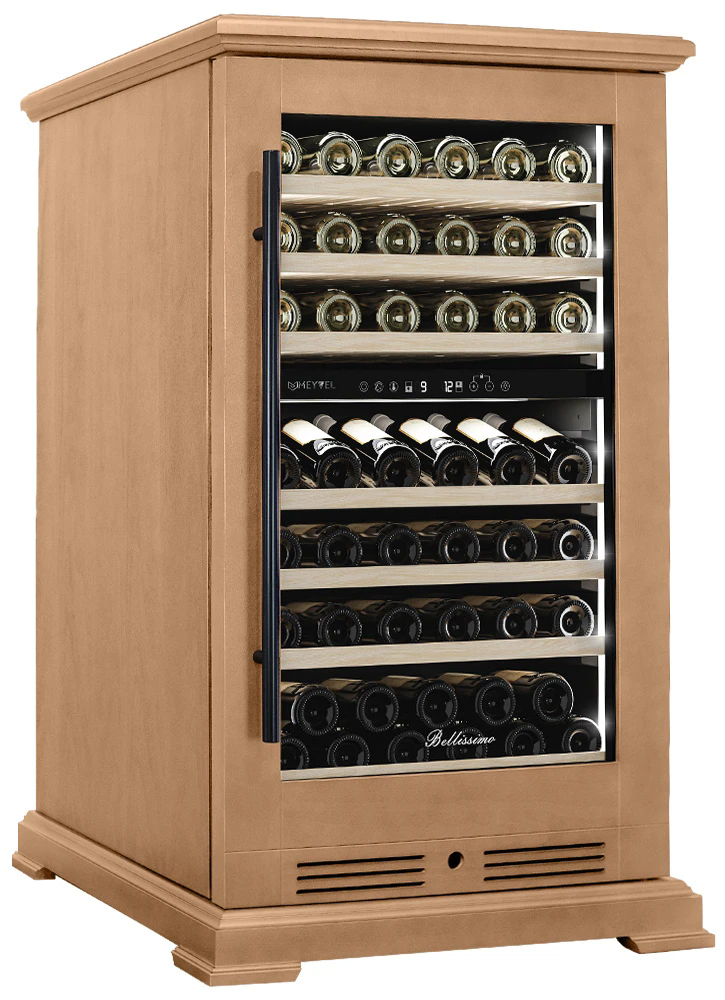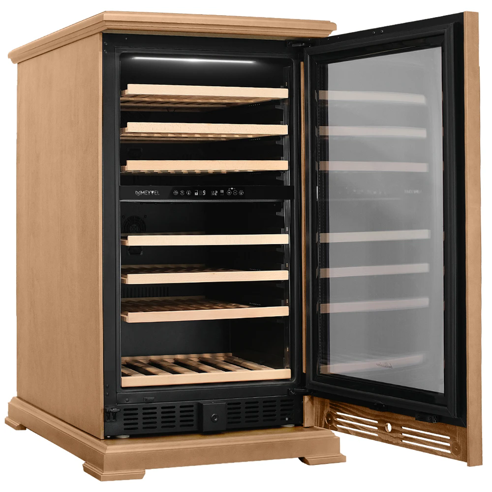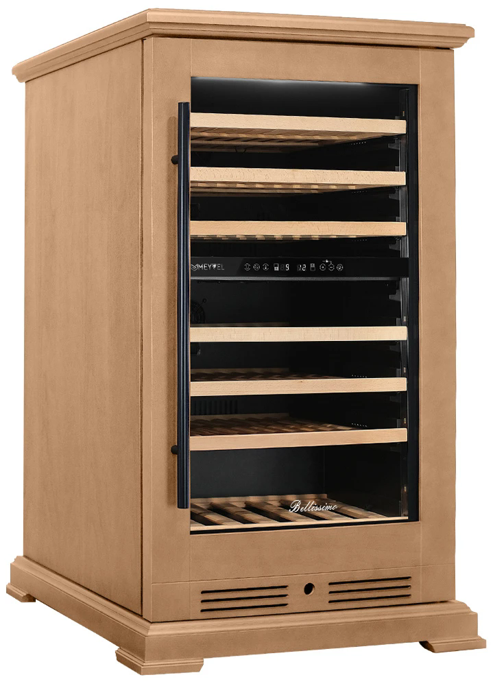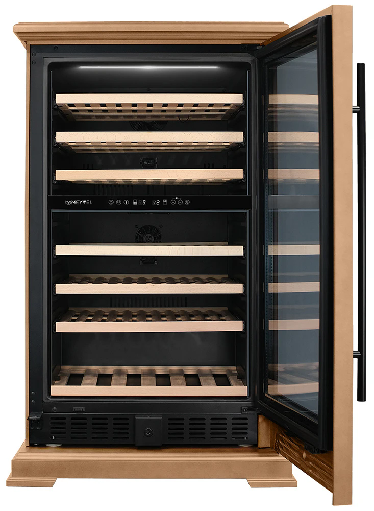 Винный шкаф двухзонный Meyvel MV77PRO-KBT2 (Натуральный бук) имеет привлекательный внешний вид, сочетающий в себе неподвластное времени очарование натурального дерева с высокотехнологичными системами.