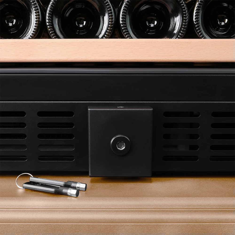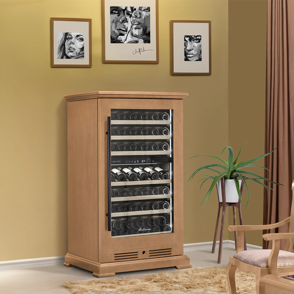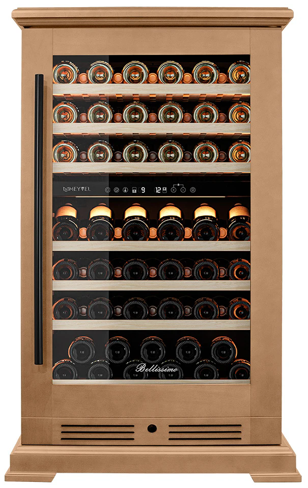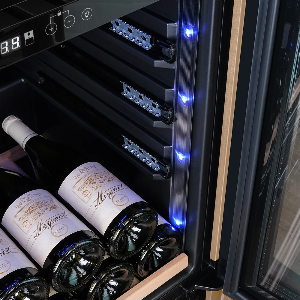 Винный шкаф двухзонный Meyvel MV77PRO-KBT2 (Натуральный бук) имеет привлекательный внешний вид, сочетающий в себе неподвластное времени очарование натурального дерева с высокотехнологичными системами.