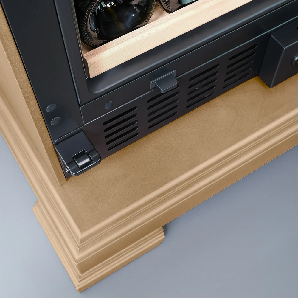 Винный холодильник оснащен дверью с защитой от ультрафиолетовых лучей и отлично подойдет для хранения и созревания различных сортов вин. Динамическая система охлаждения обеспечивает оптимальную температуру для вина и сохраняет необходимую влажность внутри камеры.
