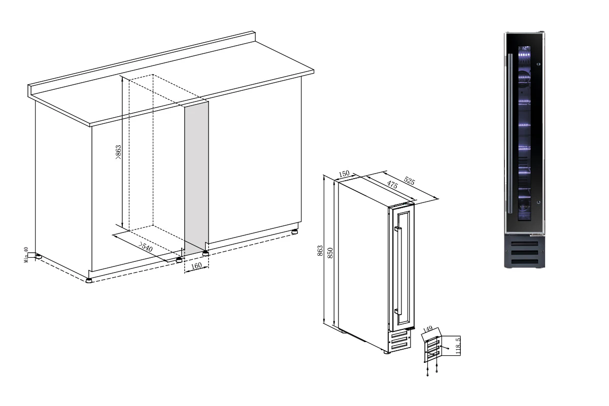 Винный шкаф из серии Premium шириной всего 15 см.