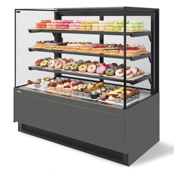 Витрина кондитерская Chilz Vete II kub 90, Антрацит/Серый матовый - обновленная линейка кубических витрин Chilz Vete Kub. Предназначена для демонстрации товаров и обеспечения удобства в магазинах различных форматов. Это идеальное решение для точек общественного питания и магазинов, специализирующихся на продаже кондитерских изделий.