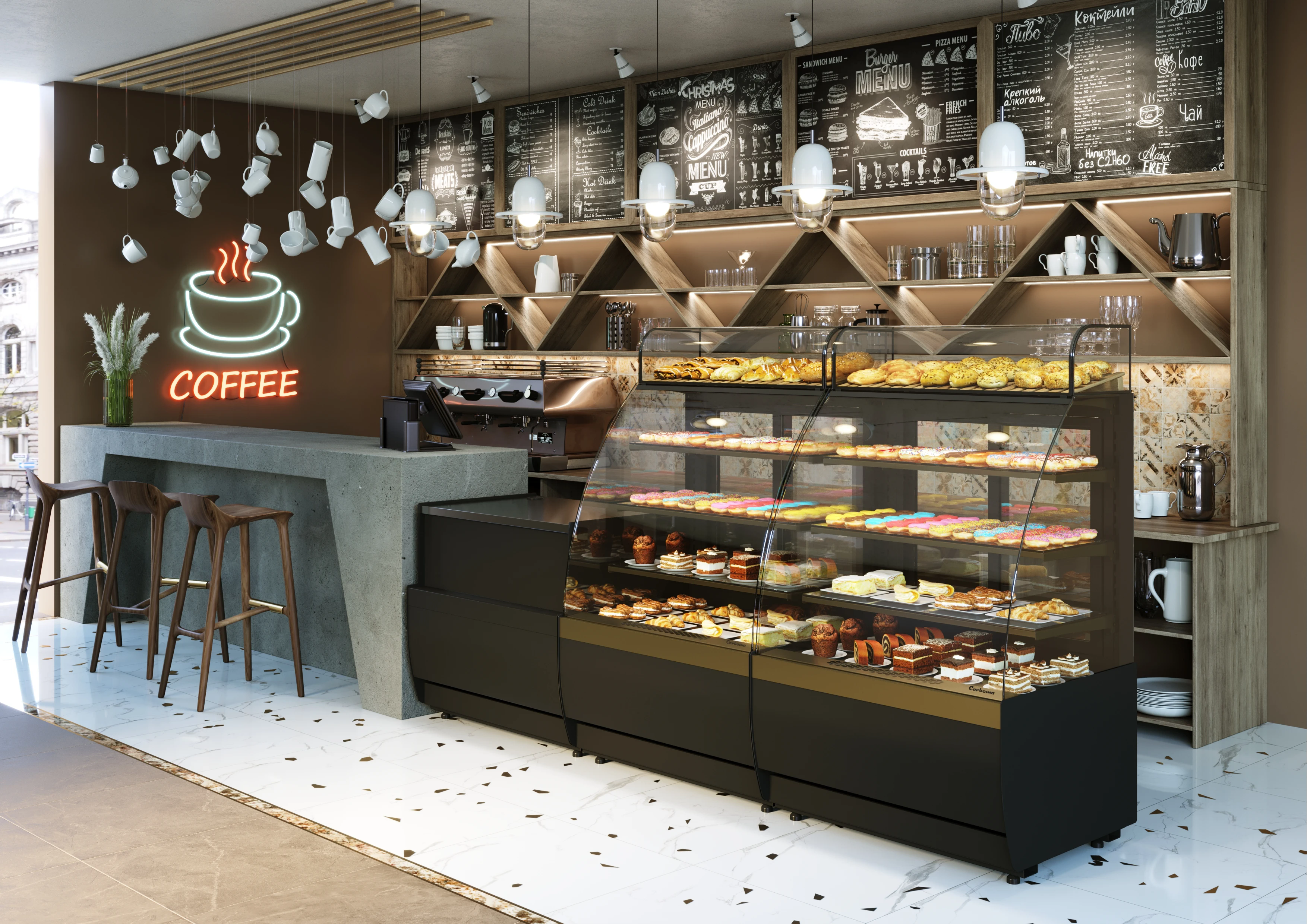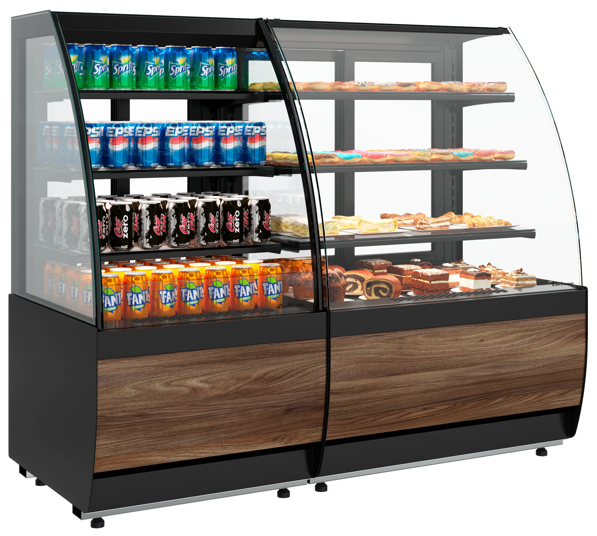 Витрина кондитерская Полюс K70 VM 1,3-1 LIGHT (версия 2.0) (9005-0109) идеальна для стильной демонстрации выпечки, тортов, пироженых, пиццы на предприятиях общественного питания и торговли.