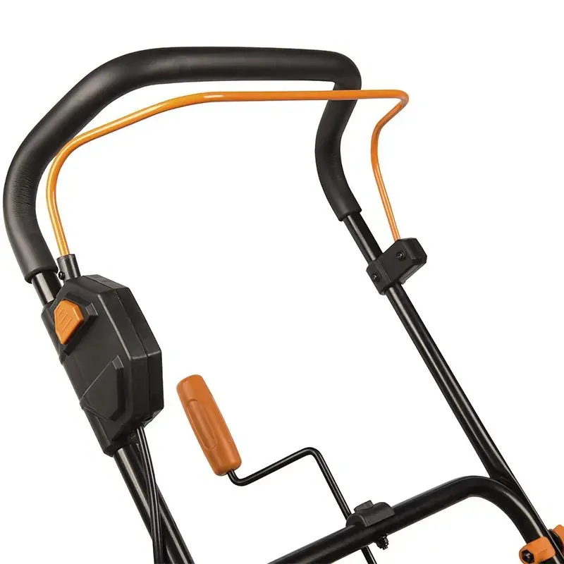 Управление вынесено на рукоятку. Благодаря складной конструкции держателя, снегоочиститель легко помещается в стесненных условиях.