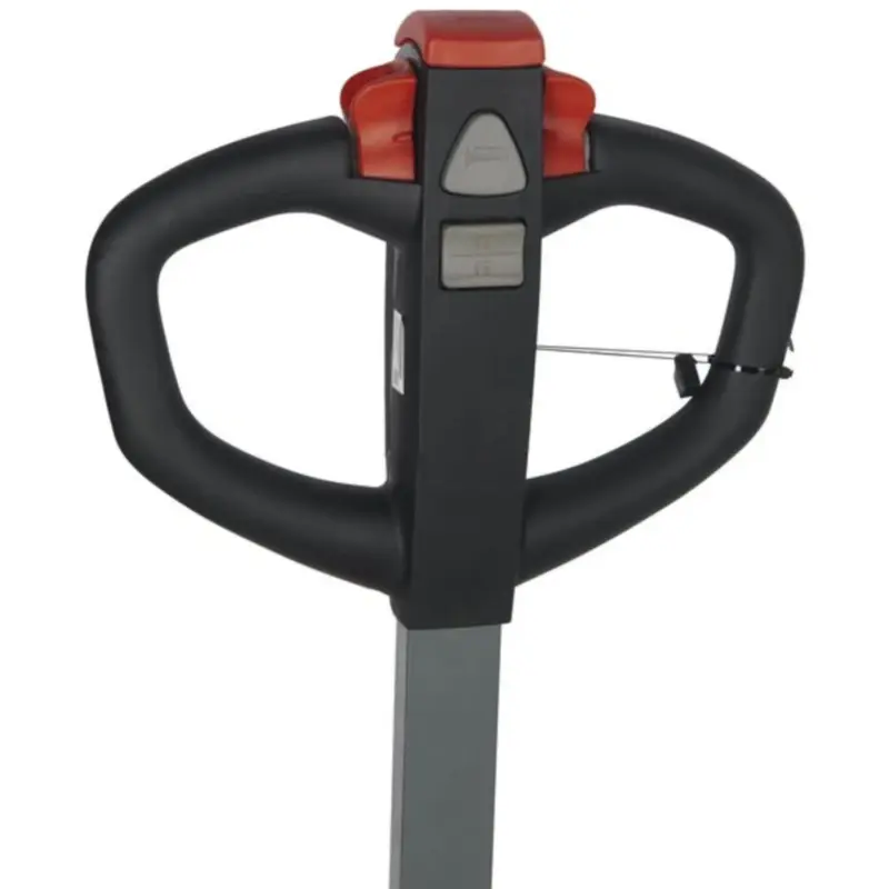 - На мультифункциональной рукояти расположены клавиши подъема/опускания вил, движения вперед- назад, кнопка автоматического реверса, электрический замок и информационный дисплей. Управление абсолютно всем функционалом возможно при помощи рукояти.