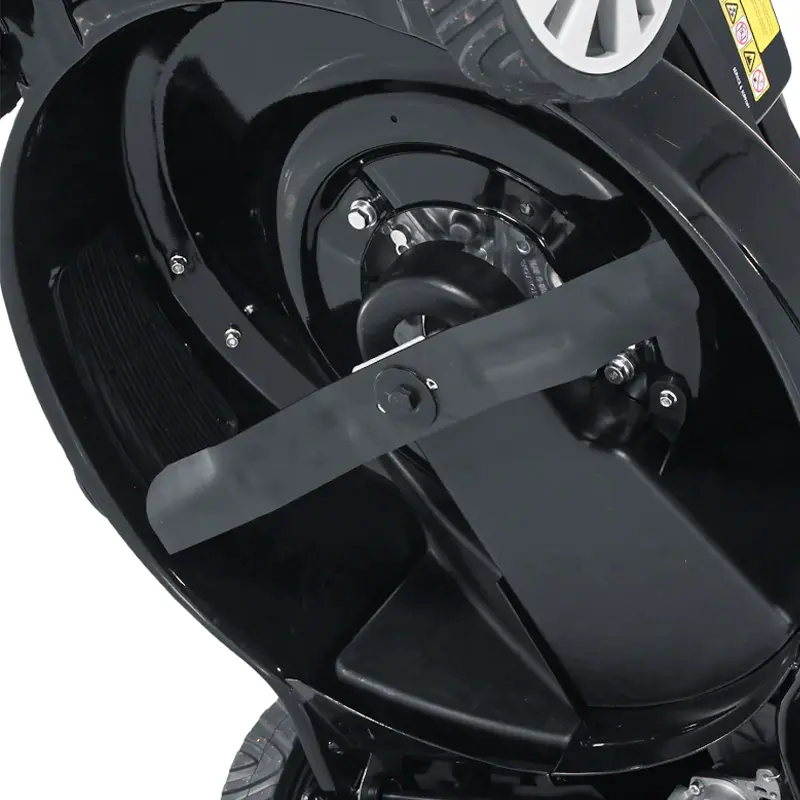 Переднее колеса диаметром 200 мм, задние —250 мм позволяют бензокосилке легко маневрировать даже на неровных участках и имеют хорошее сцепление с поверхностью. Антивибрационная рукоятка с мягкой накладкой создает дополнительное удобство при работе с газонокосилкой. Для более компактного хранения или при транспортировке рукоятка легко складывается.