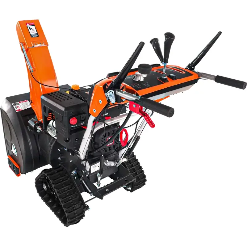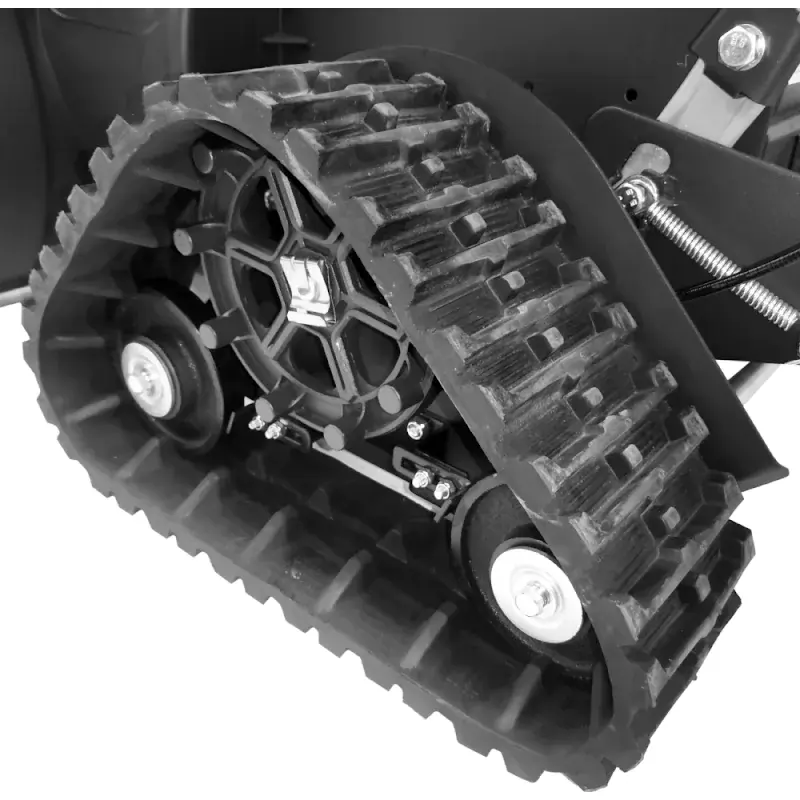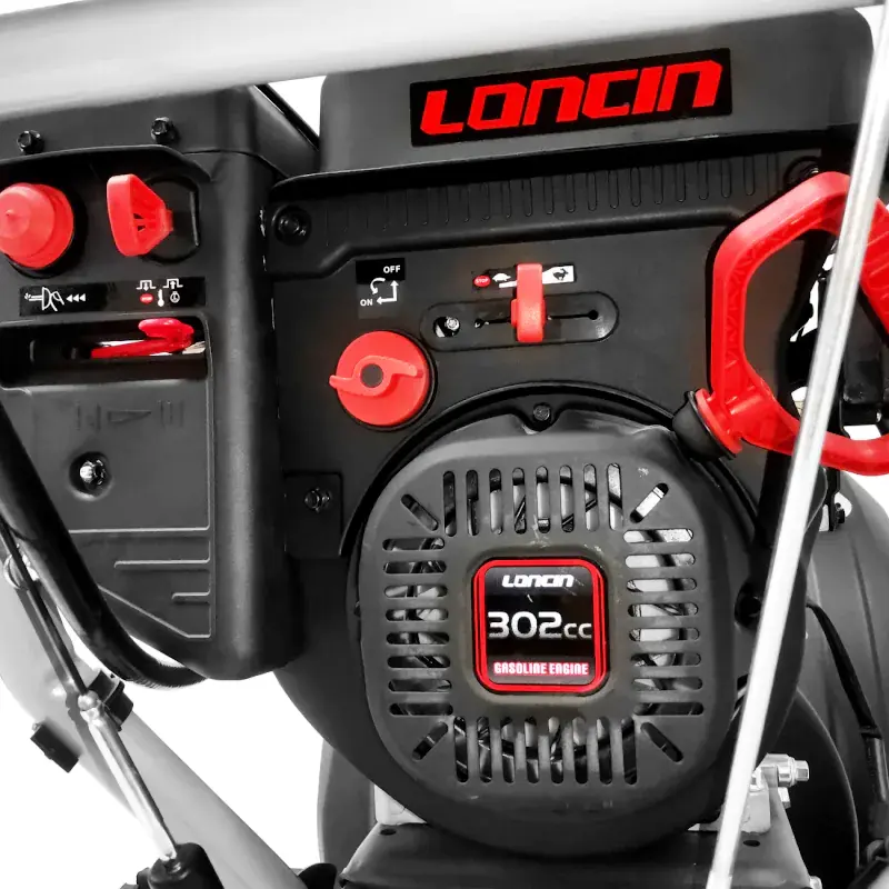 Бензиновый снегоуборщик оснащен зимним двигателем LONCIN LC 180FDS объемом 302 см3 и гусеницами для передвижения, благодаря чему подходит для сложных участков и суровых условий эксплуатации. Гусеницы треугольной формы обеспечивают устойчивость машины при работе на склонах и обледенелых участках.