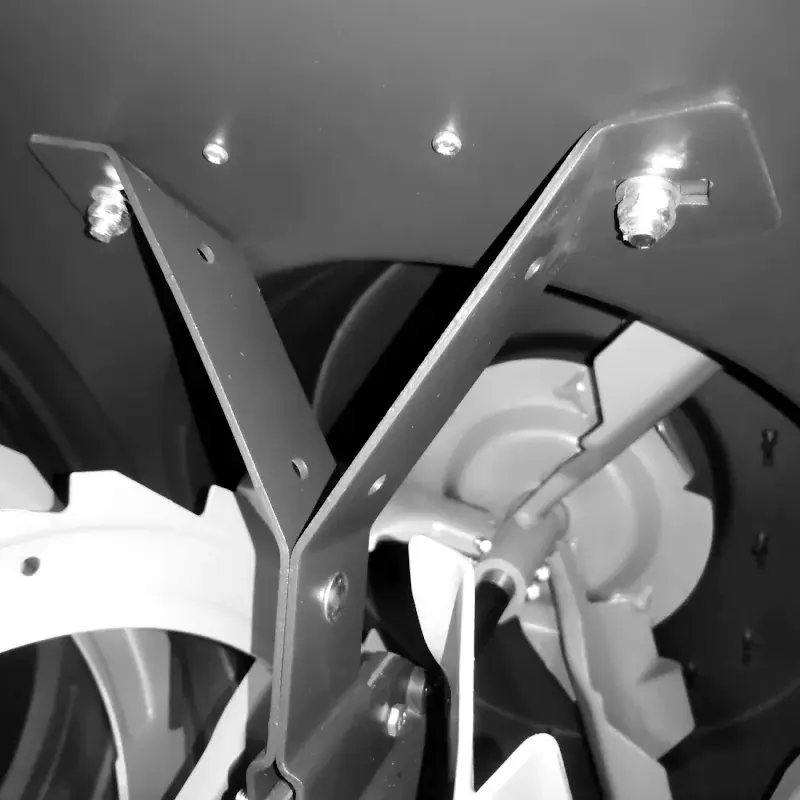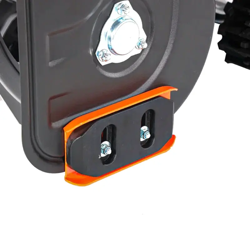 Специальные опорные лыжи из металла и полимера помогают регулировать положение ковша и защитить от повреждений очищающее декоративное покрытие. Предусмотрено три режима работы снегоуборщика: Normal — для ежедневной уборки свежего снега, Snowdrift — для обработки плотных слоев и наста, Transport — для передвижения по участку.