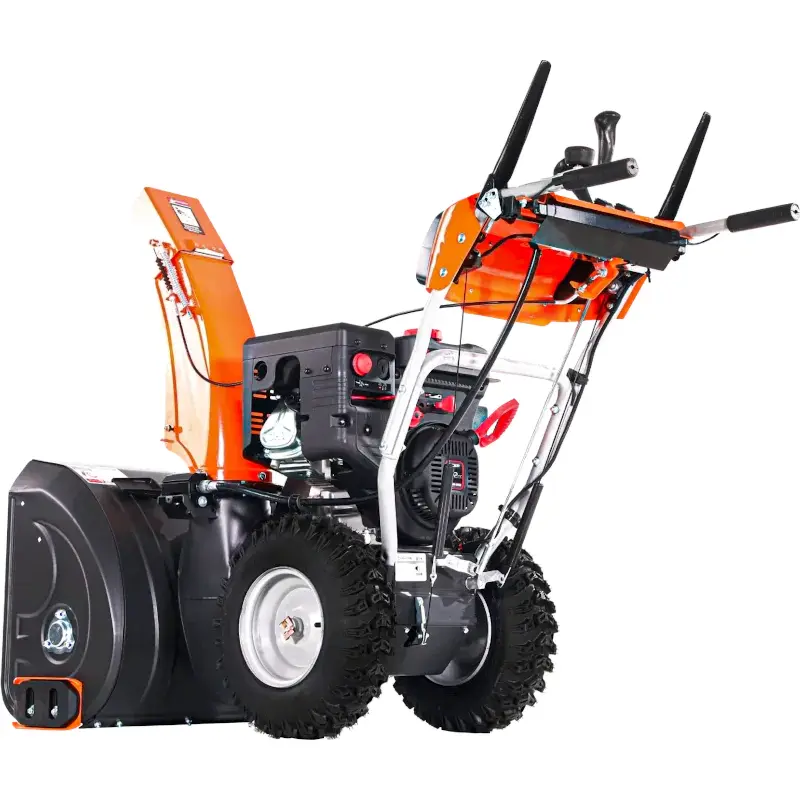 Все рычаги и кнопки для настроек выведены на переднюю панель и легко доступны, так что управлять машиной можно одной рукой. Для безопасной работы в метель или в сумерках предусмотрена яркая светодиодная фара. Большие пневматические колеса с глубоким протектором обеспечивают высокую проходимость и хорошую управляемость в различных условиях.